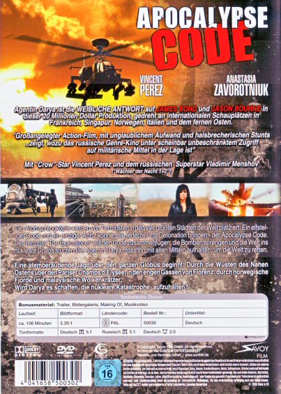 Eine atemberaubende Jagd über den ganzen Globus beginnt: Durch die Wüsten des Nahen Ostens über den Pariser Champs d’Elysee, in den engen Gassen von Florenz , durch norwegische Fjorde und malaysische Wolkenkratzer. Doch wird Darya es schaffen, die nukleare Katastrophe aufzuhalten?