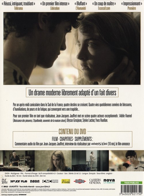 Par un après-midi caniculaire du Sud de la France, quatre parcours se croisent : ceux de Stéphane et Luigi, deux cousins à peine sortis de l'adolescence, de Georges, ancien ouvrier à la retraite, d'Amélie, la petite amie de Luigi, et d'Anne, la mère d'Amélie. Quatre vies quotidiennes semées de blessures, d'humiliations, de peurs et de fatigue, qui convergent vers une tragédie...