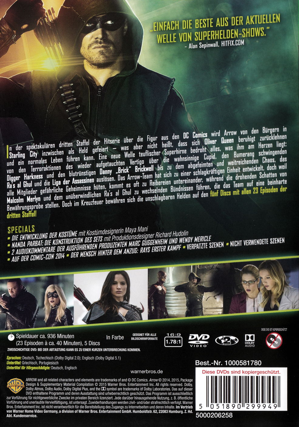 Fest entschlossen, das Unrecht von Starling City gutzumachen und denen Gerechtigkeit zu bringen, für die sie versagt hat, besiegt Oliver Queen (alias Arrow) seinen ehemaligen Verbündeten und Mentor, den rachsüchtigen Slade Wilson (alias Deathstroke) mit Hilfe seiner rechten Hand John Diggle, der technisch begabten Felicity Smoak und dem neuesten Mitglied des Teams, Roy Harper auf der Insel Lian Yu. Aber wie in jedem Krieg gibt es auch hier Opfer. Moira Queen opfert sich für ihre Kinder, stirbt durch die Hand von Deathstroke und sendet Olivers Schwester Thea in ein selbstgewähltes Exil bei ihrem biologischen Vater, Malcolm Merlyn.