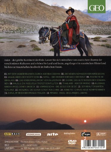 Auf 4 DVDs werden 16 spannende Geschichten über besondere Orte und Menschen in Asien präsentiert, die einen faszinierenden Blick auf die verborgenen Schätze des Kontinents erlauben.