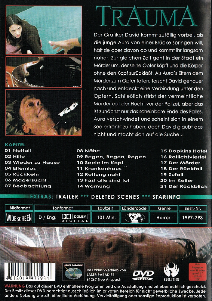 Der Grafiker David kommt zufällig vorbei, als die junge Aura von einer Brücke springen will, hält sie aber davon ab und kommt ihr langsam näher. Zur gleichen Zeit geht in der Stadt ein Mörder um, der seine Opfer köpft und die Körper ohne den Kopf zurücklässt. Als Aura's Eltern dem Mörder zum Opfer fallen, forscht David genauer nach und entdeckt eine Verbindung unter den Opfern. Schliesslich stirbt der vermeintliche Mörder auf der Flucht vor der Polizei, aber das ist zunächst nur das scheinbare Ende des Falles. Aura verschwindet und scheint sich in einem See ertränkt zu haben, doch David glaubt das nicht und macht sich auf die Suche...