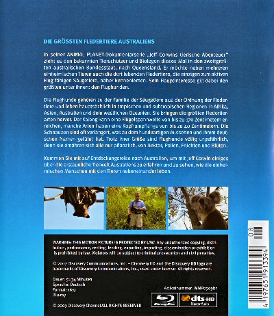 In seiner Animal Planet-Dokumentarserie "Jeff Corwins tierische Abenteuer" zieht es den bekannten Tierschützer und Biologen dieses Mal in den zweitgrössten australischen Bundesstaat, nach Queensland. Er möchte neben mehreren einheimischen Tieren auch die dort lebenden Fledertiere, die einzigen zum aktiven Flug fähigen Säugetiere, näher kennenlernen. Sein Hauptinteresse gilt dabei den grössten unter ihnen: den Flughunden.