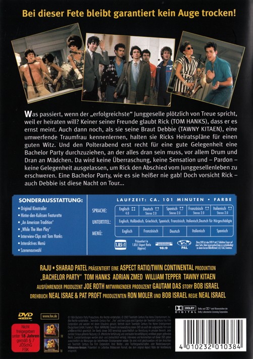 Was passiert, wenn der "erfolgreichste" Junggeselle plötzlich von Treue spricht, weil er heiraten will? Keiner seiner Freunde glaubt Rick (Tom Hanks), daß er es ernst meint. Auch dann noch, als sie seine Braut Debbie (Tawny Kitaen), eine umwerfende Traumfrau kennenlernen, halten sie Rick's Heiratspläne für einen guten Witz. Und den Polterabend erst recht für eine gute Gelegenheit aller Junggesellen zu einer Bachelor Party, an der alles dran sein muß, vor allem das Drum und Dran an den Mädchen. Da wird keine Überraschung, keine Sensation und - pardon - keine Gelegenheit ausgelassen, um Rick den Abschied vom Junggesellenleben zu erschweren. Eine Bachelor Party, wie es sie heißer nie gab, um alle Treueschwüre einzuschmelzen. Doch Vorsicht, Rick! Deine Braut Debbie und die künftige Schwiegermama sind in dieser Nacht ebenfalls unterwegs, um vor der Trauung die Tugend zu prüfen...