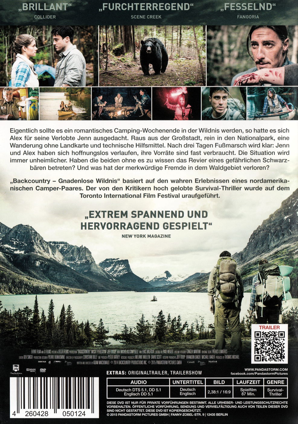 Eigentlich sollte es ein romantisches Camping-Wochenende in der Wildnis werden, so hatte es sich Alex für seine Verlobte Jenn ausgedacht. Raus aus der Grossstadt, rein in den Nationalpark, eine Wanderung ohne Landkarte und technische Hilfsmittel. Die junge Anwältin Jenn lässt ihr geliebtes Smartphone jedoch nur widerwillig zurück und auch der Park-Ranger warnt die beiden vor der gnadenlosen Wildnis. Nach drei Tagen Fussmarsch wird klar: Jenn und Alex haben sich hoffnungslos verlaufen, ihre Vorräte sind fast verbraucht. Die Situation wird immer unheimlicher. Haben die beiden ohne es zu wissen das Revier eines gefährlichen Schwarzbären betreten? Und was hat der merkwürdige Fremde in dem Waldgebiet verloren?