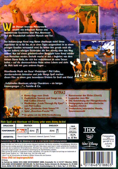 Der Indianerjunge Kenai mag Bären überhaupt nicht! Umso ärgerlicher ist es für ihn, als er eines Tages ausgerechnet in so einen pelzigen Gesellen verwandelt wird. Da fehlen ihm gerade noch die beiden äusserst schrägen Elchbrüder, die ihm ständig über den Weg traben! Nur auf einem geheimnisvollen Berggipfel kann Kenai wieder zum Menschen werden. Deshalb macht er sich begleitet von dem kleinen Bären Koda, der sich fest entschlossen an seine Tatzen heftet auf die abenteuerlichste Reise seines Lebens und sieht die Welt bald mit ganz anderen Augen...