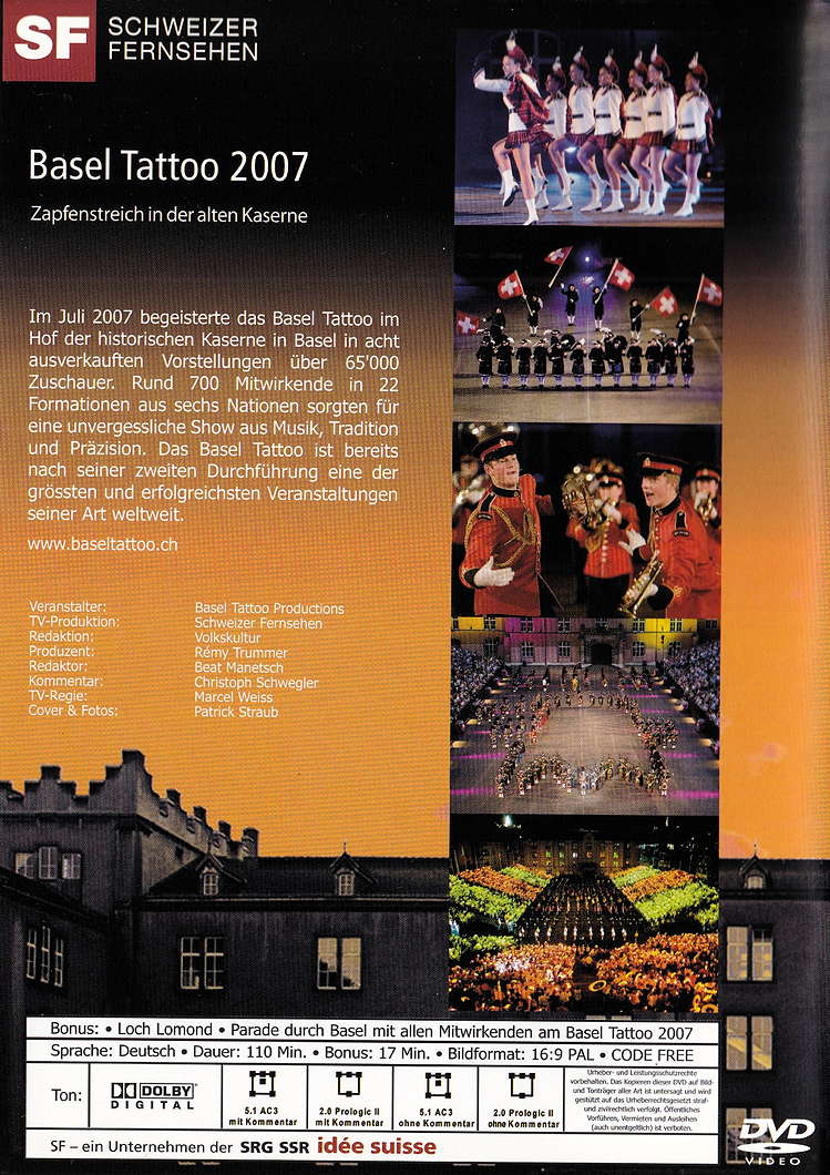 Im Juli 2007 begeisterte das Basel Tattoo im Hof der historischen Kaserne in Basel in acht ausverkauften Vorstellungen über 65'000 Zuschauer. Rund 700 Mitwirkende in 22 Formationen aus sechs Nationen sorgten für eine unvergessliche Show aus Musik, Tradition und Präzision. Das Basel Tattoo ist bereits nach seiner zweiten Durchführung eine der grössten und erfolgreichsten Veranstaltungen seiner Art weltweit.