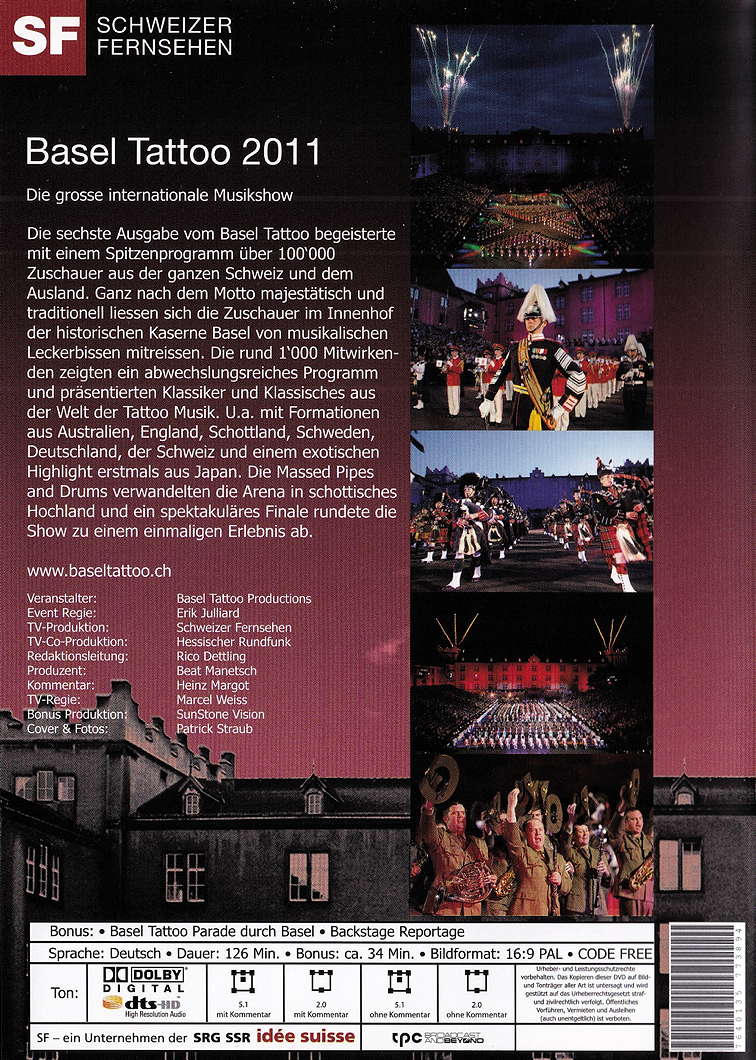 Die sechste Ausgabe vom Basel Tattoo begeisterte mit einem Spitzenprogramm über 100 000 Zuschauer. Ganz nach dem Motto majestätisch und traditionell liessen sich die Zuschauer im Innenhof der historischen Kaserne Basel von musikalischen Leckerbissen mitreissen. Die rund 1000 Mitwirkenden zeigten ein abwechslungsreiches Programm und präsentierten Klassiker und klassisches aus der Welt der Tattoo Musik. U.a. mit Formationen aus Australien, England Schottland, Schweden, Deutschland, der Schweiz und einem exotischen Highlight erstmals aus Japan. Die Massed Pipes and Drums verwandelten die Arena in schottisches Hochland und ein spektakuläres Finale rundete die Show zu einem einmaligen Erlebnis ab.