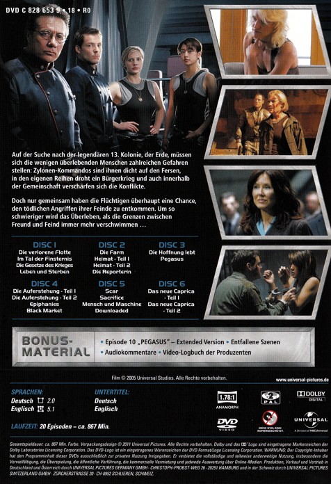 Immer noch fliehen die letzten überlebenden Menschen vor der erbarmunglosen Cylonen durch die Tiefen des Alls. Nach dem furchtbaren Attentat auf "Galactica"-Commander Adama spitzt sich die Lage zu: Sein alkoholkranker Stellvertreter Colonel Tigh verkündet das Kriegsrecht. Zahllose Schiffe der Raumflotte schlagen sich auf die Seite von Präsidentin Laura Roslin, der die Flucht nach Kobol gelungen ist. Hier soll sich die Wiege der Menschheit befinden und der Schlüssel zur letzten Hoffnung der Flüchtenden - ein Reiseplan zur Erde. Während die Cylonen neue, heimtückische Attacken starten und sich die Präsidentin gegen den rebellischen Politiker Tom Zarek wehren muss, taucht ein zweiter Kampfstern namens "Pegasus" auf - und provoziert einen tödlichen Kampf mit der "Galactica"...