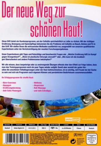 Diese DVD bietet ein Rundprogramm, um der Cellulite sprichwörtlich zu Leibe zu rücken. Mit der richtigen Ernährung, Bewegung und Spezialpflege bekommen Sie die Probleme mit Cellulite an Bauch, Beinen und Po in den Griff. Wir stellen Ihnen die wirksamsten Methoden ausführlich vor, ausgewählt von unserem qualifizierten Expertenteam unter Berücksichtigung der neuesten Forschungsergebnisse.