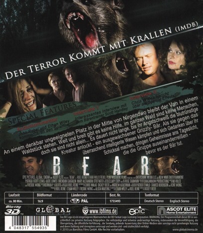 An einem denkbar ungeeigneten Platz in der Mitte von Nirgendwo bleibt der Van in einem Waldstück stehen. Weit und breit gibt es keine Hilfe, im ganzen Wald sind keine Menschen, doch Sie sind nicht allein... Es dauert nicht lange bis Ihr Angstschweiß die blutrünstige Kreatur anlockt - ein aus- gewachsener Grizzly-Bär auf der suche nach Fressen. Als sie gegen das überraschend intelligente Wesen kämpfen und sich Gedanken über ihr Schicksal machen, dringen Geheimnisse ans Tageslicht die die Gruppe auseinanderreißen, bevor es der Bär tut.