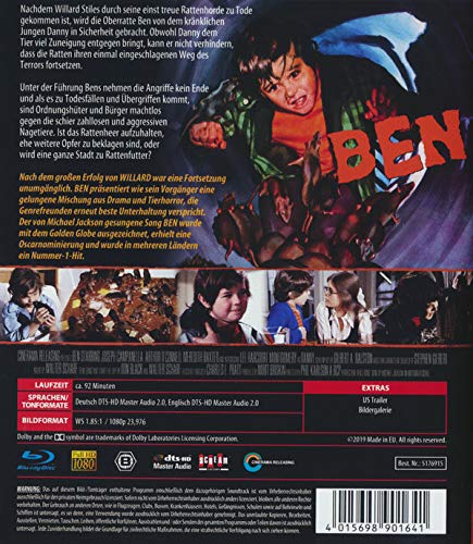 Nach dem grossen Erfolg von WILLARD war eine Fortsetzung unumgänglich. BEN präsentiert wie sein Vorgänger eine gelungene Mischung aus Drama und Tierhorror, die Genrefreunden erneut beste Unterhaltung verspricht. Der von Michael Jackson gesungene Song BEN wurde mit dem Golden Globe ausgezeichnet, erhielt eine Oscarnominierung und wurde in mehreren Ländern ein Nummer-1-Hit. 2