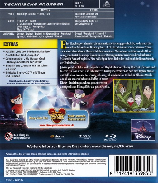 - Titel Bernard & Bianca - Die Mäusepolizei [Blu-ray]