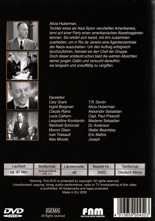 - Schauspieler Cary Grant, Ingrid Bergman, Claude Rains, Louis Calhern, Reinhold Schünzel
