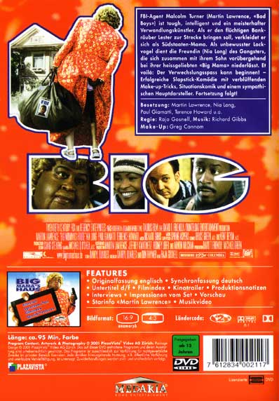 FBI-Agent Melcom Turner (Martin Lawrence, "Bad Boys") ist tough, intelligent und ein meisterhafter Verwandlungskünstler. Als er den flüchtigen Bankräuber Lester zur Strecke bringen soll, verkleidet er sich als Südstaaten Mamma. Als unbewusster Lockvogel dient die Freundin des Gangsters, die sich zusammen mit ihrem Sohn vorrübergehend bei ihrer heissgeliebten "Big Mama" niederlässt. Et voilà: Der Verwechslungsspass kann beginnen! - Erfolgreiche Slapstick-Komödie mit verblüffenden Make-up-Tricks, Situationskomik und einem sympathischen Hauptdarsteller. Fortsetzung folgt!