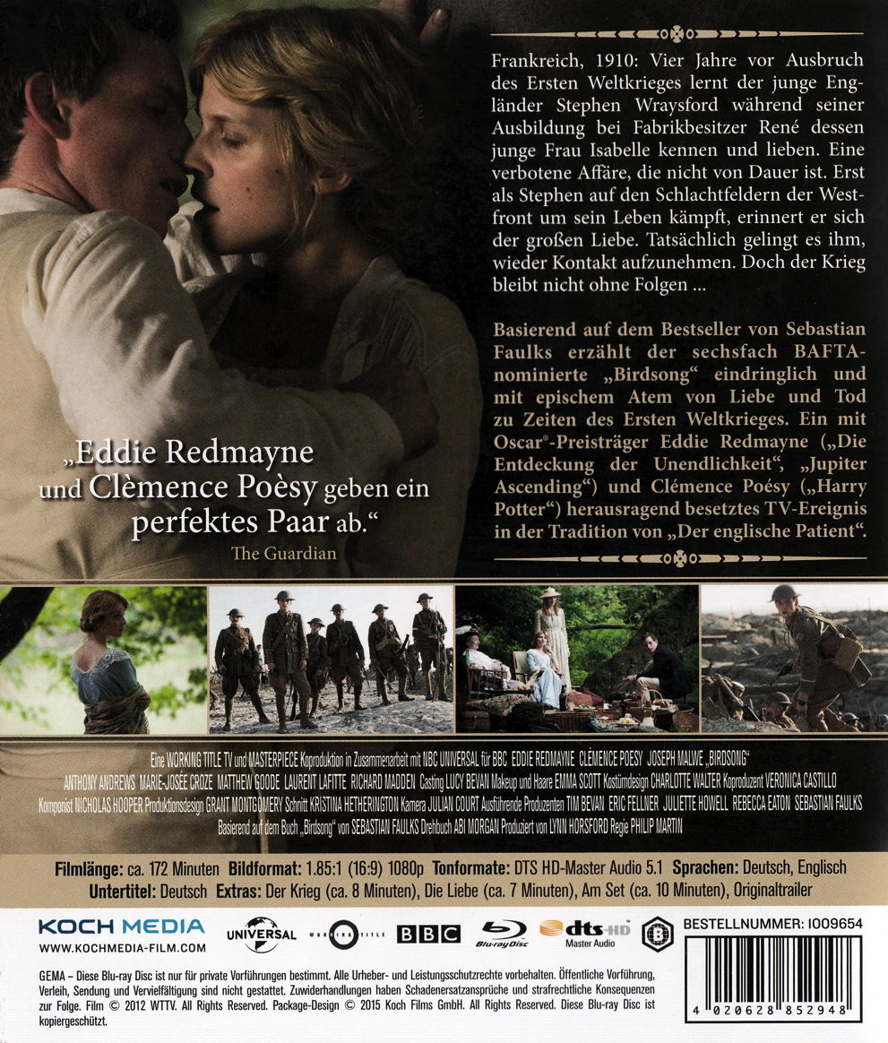 Frankreich, 1910: Vier Jahre vor Ausbruch des Ersten Weltkrieges lernt der junge Engländer Stephen Wraysford während seiner Ausbildung bei Fabrikbesitzer René Azaire dessen junge Frau Isabelle kennen und lieben. Eine verbotene Affäre, die nicht von Dauer ist. Erst als Stephen auf den Schlachtfeldern der Westfront um sein Leben kämpft, erinnert er sich der großen Liebe. Tatsächlich gelingt es ihm, wieder Kontakt aufzunehmen. Doch der Krieg bleibt nicht ohne Folgen...