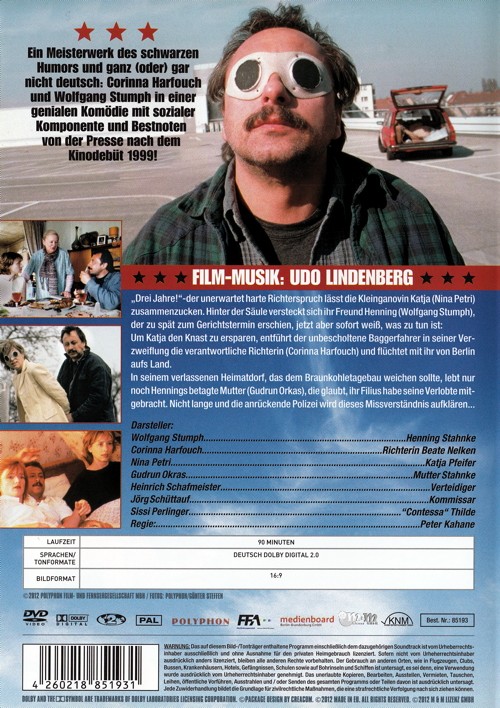 "Drei Jahre"- Der unerwartet harte Richterspruch lässt die Kleinganovin Katja zusammenzucken. Hinter einer Säule versteckt sich ihr Freund Henning Stahnke (Wolfgang Stumph), der zu spät zum Gerichtstermin erschien, jetzt aber sofort weiss, was zu tun ist: Um Katja den Knast zu ersparen, entführt der unbescholtene Baggerfahrer in seiner Verzweiflung die verantwortliche Richterin (Corinna Harfouch) und flüchtet mit ihr von Berlin aufs Land.