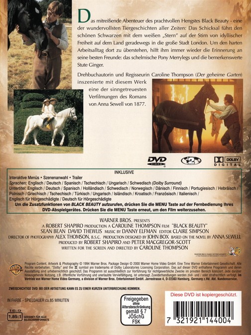 Von Peter Macgregor-Scott, dem Produzenten von "Batman Forever", kommt die Neuverfilmung einer der wundervollsten Tiergeschichten aller Zeiten; die mitreißenden Abenteuer des schönen Pferdes Black Beauty, erzählt aus der Sicht des schwarzen Hengstes.