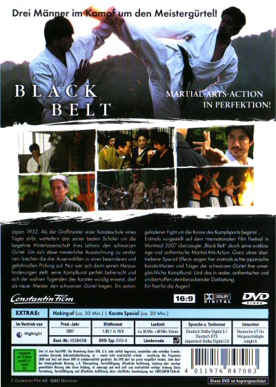 Japan 1932: Als der Grossmeister einer Karateschule eines Tages stirbt, wetteifern drei seiner besten Schüler um die begehrte Hinterlassenschaft ihres Lehrers: den schwarzen Gürtel. Um sich dieser meisterliche Auszeichnung zu verdienen, brechen die drei Auserwählten zu einer besonderen und gefahrvollen Prüfung auf. Nur wer sich darin seinen Herausforderungen stellt, seine Kampfkunst perfekt beherrscht und sich der wahren Tugenden des Karates würdig erweist, darf als neuer Meister den schwarzen Gürtel tragen.