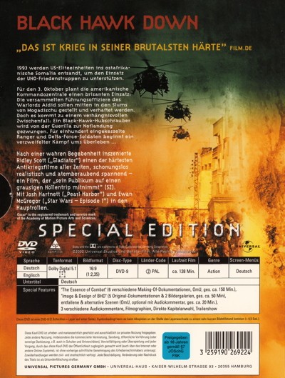 1993 werden US-Eliteeinheiten ins ostafrikanische Somalia entsandt, um den Einsatz der UNO-Friedenstruppen zu unterstützen. Für den 3. Oktober plant die amerikanische Kommandozentrale einen brisanten Einsatz: Die versammelten Führungsoffiziere des Warlords Aidid sollen mitten in den Slums von Mogadischu gestellt und verhaftet werden. Doch es kommt zu einem verhängnisvollen Zwischenfall: Ein Black-Hawk-Hubschrauber wird von der Guerilla zur Notlandung gezwungen. Für einhundert eingekesselte Ranger und Delta-Force-Soldaten beginnt ein verzweifelter Kampf ums Überleben...