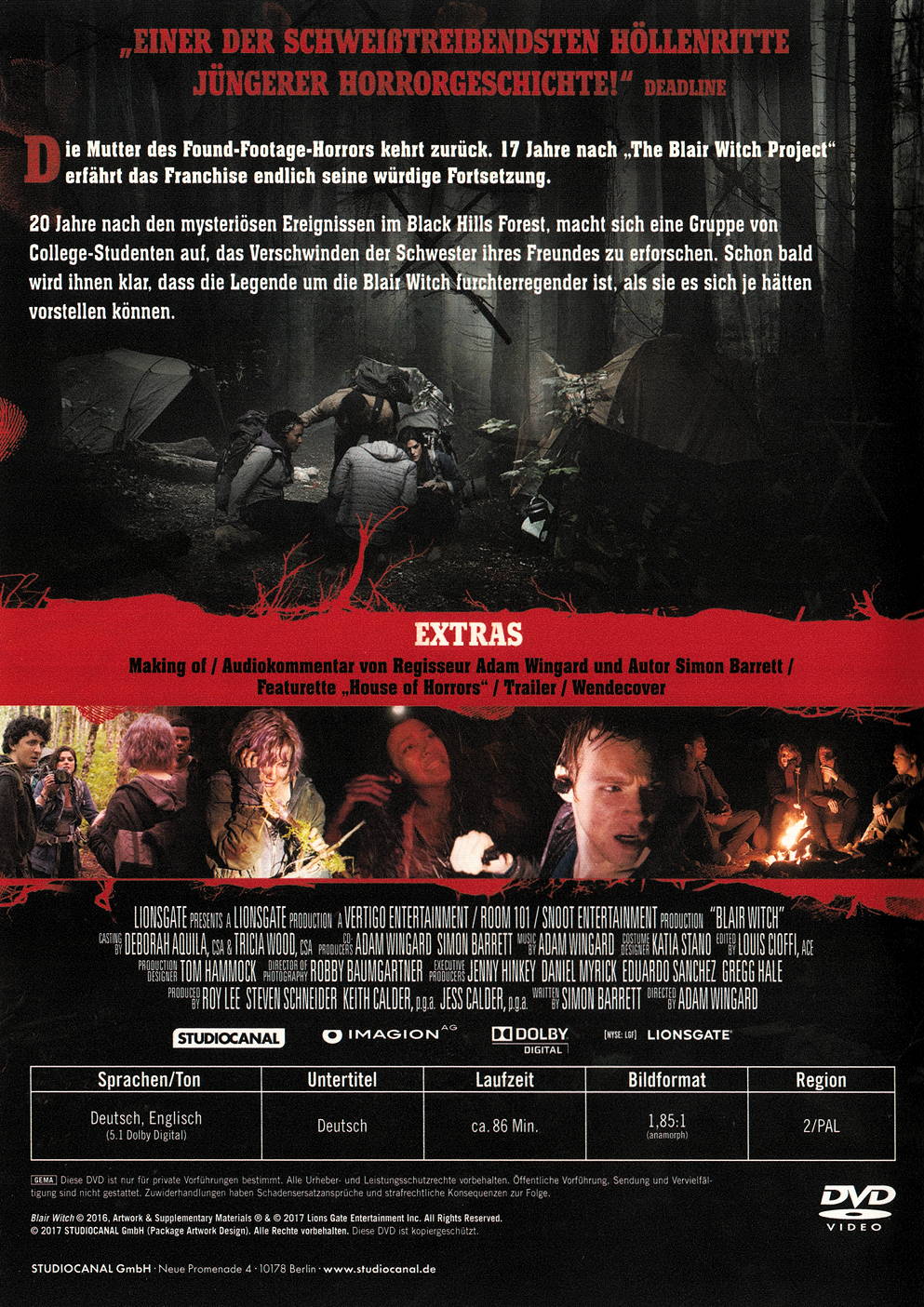 20 Jahre ist es nun schon her, dass Heather Donahue und ihre Freunde in den Black-Hills-Wäldern verschwanden. Nun macht es sich Heathers Bruder James zur Aufgabe, gemeinsam mit seinen Freunden Peter und Ashley und der mit einer Videokamera ausgestatteten Filmstudentin Lisa die Umstände dieses äusserst mysteriösen Verschwindens, das nie aufgeklärt wurde, zu erforschen. Durch die düsteren Wälder lassen sie sich von zwei Einheimischen führen, was die Truppe zuversichtlich stimmt: So werden sie sich ganz bestimmt nicht verirren! Als sie jedoch nachts das Gefühl haben, in ihrem Lager von jemandem - oder etwas - beobachtet zu werden, stellen sie fest, dass das Verirren ihr geringstes Problem sein dürfte... denn während sich die Legende von der Hexe von Blair zuhause noch wie ein Ammenmärchen anhörte, rückt sie im dunklen Wald immer mehr in den Bereich des Möglichen.