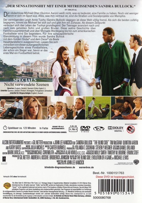 Der vermögenden Leigh Anne Tuohy (Sandra Bullock) dagegen ist diese Welt völlig fremd. Als sich die beiden zufällig begegnen, nimmt sie Michael bei sich auf und gibt ihm ein Zuhause. Ab diesem Zeitpunkt verändert sich das Leben der Tuohys grundlegend: Der Teenager avanciert nach und nach zum geliebten Sohn und grossen Bruder. Diese wahre Geschichte über Familiezusammenhalt und über Michaels Werdegang bis hin zum amerikanischen Footballstar begeistert. Für ihre schauspielerische Glanzleistung in diesem Film wurde Sandra Bullock mehrfach als beste Hauptdarstellerin ausgezeichnet. Lassen Sie sich mitreissen von dieser aussergewöhnlichen Lebensgeschichte eines Footballstars, der schon ein Sieger war, bevor er das erste Mal ein Footballfeld betrat.