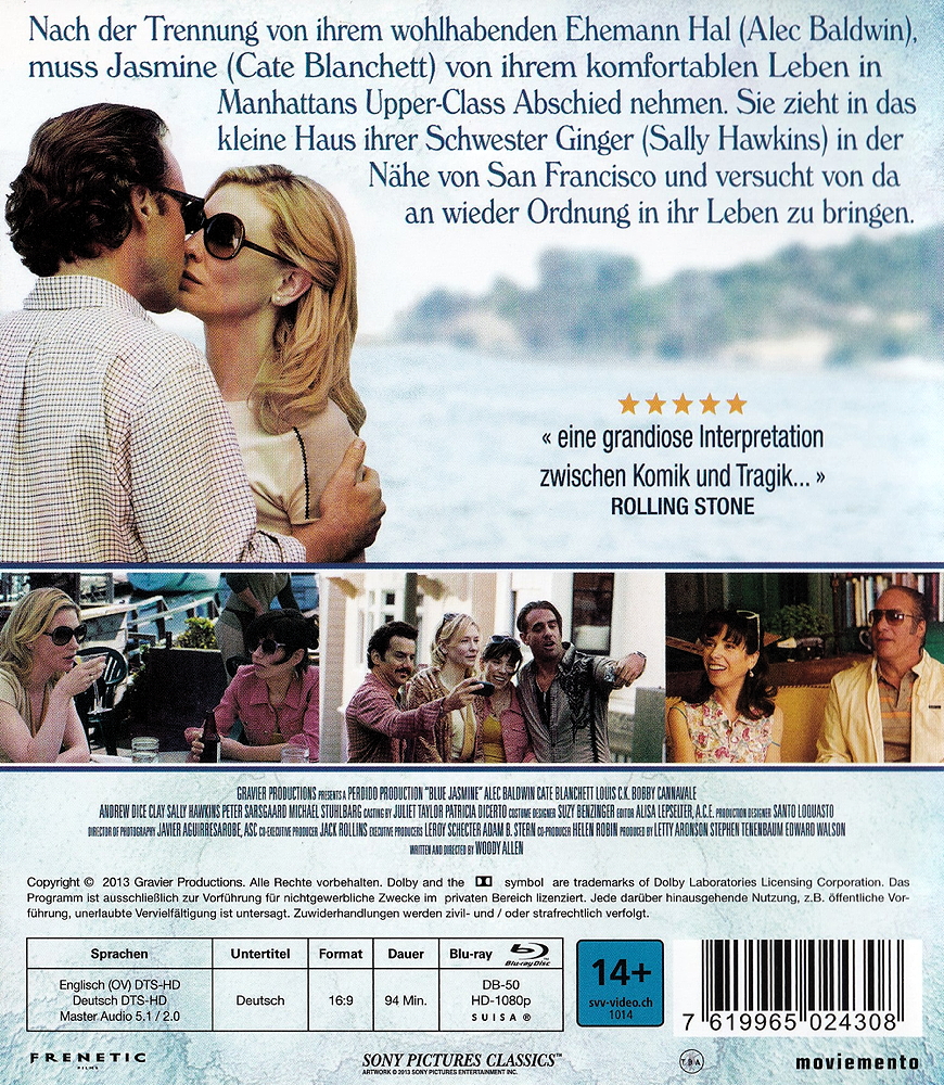 Das neue Meisterwerk von Woody Allen mit einer herausragenden Cate Blanchett in der Hauptrolle: "Blue Jasmine" erzählt die Geschichte einer eleganten New Yorker Hausfrau in den letzten Phasen einer akuten Lebenskrise. Als ihre Ehe mit dem reichen Geschäftsmann Hal (Alec Baldwin) zerbricht, muss die versnobte High-Society-Diva Jasmine (Cate Blanchett) ihr Leben neu ordnen und zieht deshalb vorübergehend zu ihrer Schwester Ginger (Sally Hawkins), die in San Francisco ein eher bescheidenes Leben führt. Obwohl psychisch in denkbar schlechter Verfassung, versucht Jasmine verzweifelt, nach aussen weiterhin die gewohnte aristokratische Fassade aufrecht zu halten.