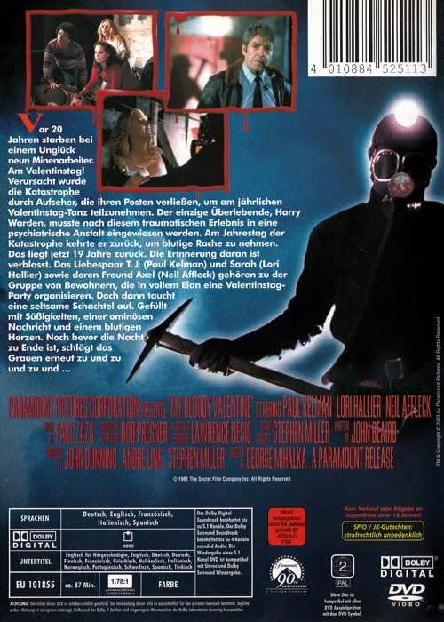 Vor 20 Jahren starben bei einem Unglück neun Minenarbeiter. Am Valentinstag! Verursacht wurde die Katastrophe durch Aufseher, die ihren Posten verliessen, um am jährlichen Valentinstag-Tanz teilzunehmen. Der einzige überlebende, Harry Warden, musste nach diesem traumatischen erlebnis in eine psychiatrische Anstalt eingewiesen werden. Am Jahrestag der Katastrophe kehrte er zurück, um blutige Rache zu nehmen. Das liegt jetzt 19 Jahre zurück. Die Erinnerung daran ist verblasst. Das Liebespaar T.J. (Paul Kelman) und Sarah (Lori Hallier) sowie deren Freund Axel (Neil Affleck) gehören zu der Gruppe von Bewohnern, die in vollem Elan eine Valentinstag-Party organisiren. Doch dann taucht eine seltsame Schachel auf. Gefüllt mit Süssigkeiten, einer ominösen Nachricht und einem blutigen Herzen. Noch bevor die Nacht zu Ende ist, schlägt das Grauen erneut zu und zu und zu und...