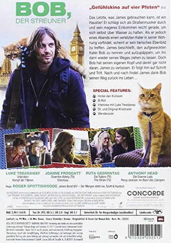 Das Letzte was James gebrauchen kann, ist ein Haustier! Er schlägt sich von Tag zu Tag als Strassenmusiker durch und sein mageres Einkommen reicht gerade, um sich selbst über Wasser zu halten. Und jetzt auch noch das: Als er eines Abends einen abgemagerten, verletzten Kater vor seiner Tür findet, scheint er sein tierisches Ebenbild zu treffen. Obwohl knapp bei Kasse beschliesst er, den aufgeweckten Kater aufzupäppeln, um ihn dann wieder seines Weges ziehen zu lassen. Doch Bob hat seinen eigenen Kopf und denkt gar nicht daran, James zu verlassen. Er folgt ihm auf Schritt und Tritt. Für James ist nichts mehr wie es war. Bob und er werden unzertrennliche Freunde und James findet Dank Bob nach und nach den Weg zurück ins Leben...