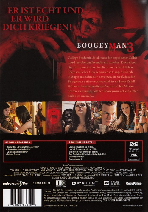 College Studentin Sarah muss den angeblichen Selbstmord ihrer besten Freundin mit ansehen. doch dieser Selbstmord setzt eine Kette von schrecklichen, übernatürlichen Geschehnissen in Gang, die Sarah in Angst und Schrecken versetzen. Sie weiß, dass der Boogeyman dafür verantwortlich ist und kein Zufall. Während ihrer verzweifelten Versuche, ihre Mitstudenten zu warnen, holt der Boogeyman sich ein Opfer nach dem anderen...