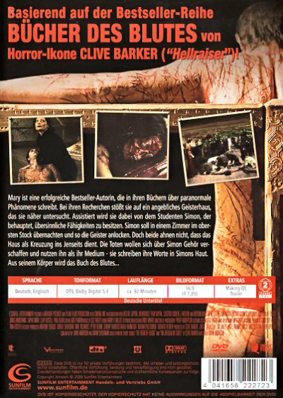 Mary ist eine erfolgreiche Bestseller-Autorin, die in ihren Büchern über paranormale Phänomene schreibt. Bei ihren Recherchen stösst sie auf ein angebliches Geisterhaus, das sie näher untersucht. Assistiert wird sie dabei von dem Studenten Simon, der behauptet, übersinnliche Fähigkeiten zu besitzen. Simon soll in einem Zimmer im obersten Stock übernachten und so die Geister anlocken. Doch beide ahnen nicht, dass das Haus als Kreuzung ins Jenseits dient. Die Toten wollen sich über Simon Gehör verschaffen und nutzen ihn als ihr Medium - sie schreiben ihre Worte in Simons Haut. Aus seinem Körper wird das Buch des Bluts...