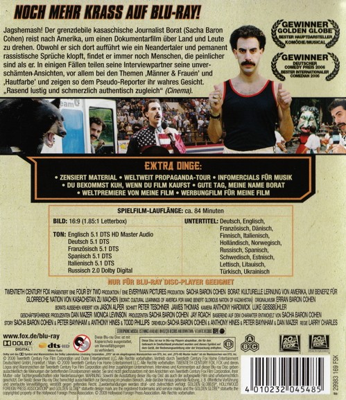 Sacha Baron Cohen, grosse Star und Erschaffungsmann von weltweit berühmte "Da Ali G Show", jetzt bringen seine wahrhaft einzighafte Figur Borat Sagdiyev von Kasachstan zum ersten Mal auf grosse Leinwand. Mit Mannschaft von Kamera an Abschleppseil und bewaffnet mit Glas von Zigeunertränen "für Schutz" reisen Kasachstans viertberühmtester Prominente nach US und A um zu filmen Dokumentation für Fernseher. Während er fahren in Zickzack durch grosse Land, Borat treffen echte Menschen in echte Situationen - mit Konsequenzen die machen auf Boden liegen vor Lachen!