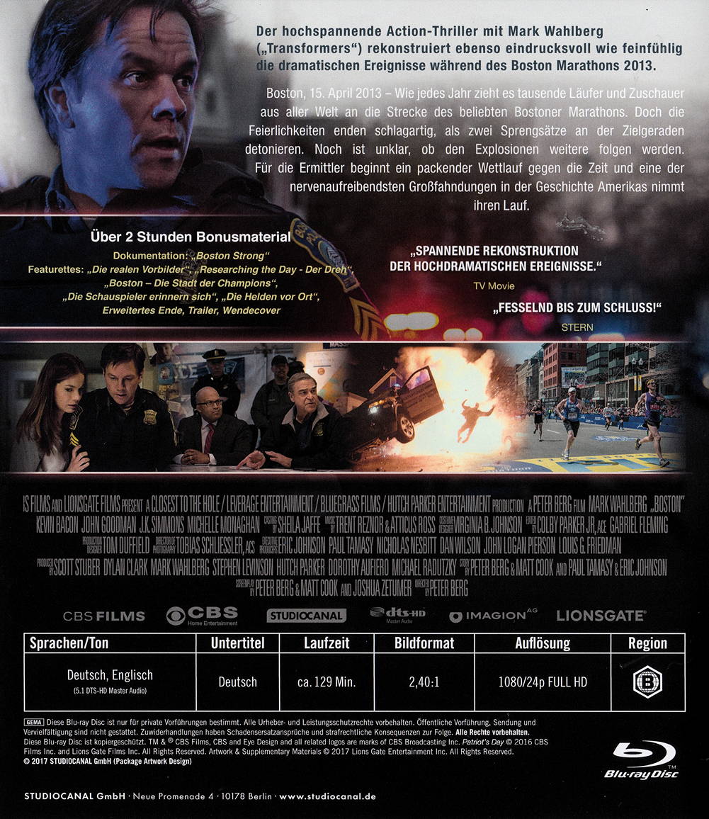 15. April 2013: Wie immer am Patriots Day findet in Boston der Marathon statt. Wie in jedem Jahr ist das Sportereignis ein grosses Volksfest, das aber an diesem bestimmten Nachmittag eine schreckliche Wendung nimmt. Innerhalb weniger Sekunden explodieren zwei Sprengsätze im Zielbereich des Rennens. Es gibt mehrere Tote und zahlreiche Verletzte. Doch für Schock haben die Police Sergeants Tommy Saunders und Jeffrey Pugliese keine Zeit. Sie blicken wie auch Special Agent Richard DesLauriers, Polizeichef Ed Davis und Krankenschwester Carol Saunders einer Vielzahl an Aufgaben ins Auge: Allen voran müssen Verletzte versorgt werden und zudem läuft ein Rennen gegen die Uhr, denn die Attentäter müssen ausfindig gemacht und gestoppt werden, bevor sie erneut zuschlagen können...