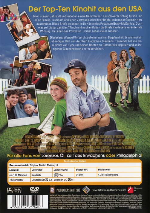 Tyler ist neun Jahre alt und leidet an einem Gehirntumor. Ein schwerer Schlag für ihn und seine Familie. In seinem kindlichen Vertrauen schreibt er Briefe, in denen er Gott sein Herz ausschüttet. Diese Briefe gelangen in die Hände des Postboten Brady McDaniels. Doch was soll dieser damit tun? Nach und nach entfalten die Briefe ihre lebensverändernde Wirkung. Im Leben des Postboten. Und im Leben vieler anderer...
