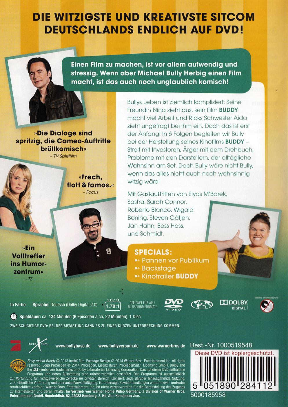 Einen Film zu machen, ist vor allem aufwändig und stressig. Wenn aber Michael Bully Herbig einen Film macht, ist das auch noch unglaublich komisch. Bullys Leben ist ziemlich kompliziert: Seine Freundin Nina zieht aus, sein Film Buddy macht viel Arbeit und Ricks Schwester Aida zieht ungefragt bei ihm ein. Doch das ist erst der Anfang! In 6 Folgen begleiten wir Bully bei der Herstellung seines Kinofilms Buddy - Streit mit Investoren, Ärger mit dem Drehbuch, Probleme mit den Darstellern, der alltägliche Wahnsinn am Set. Doch Bully wäre nicht Bully, wenn das alles nicht auch noch wahnsinnig witzig wäre. Mit Gastauftritten von Elyas M’Barek, Sasha, Sarah Connor, Roberto Blanco, Wigald Boning, Steven Gätjen, Jan Hahn, Boss Hoss, Schmidt