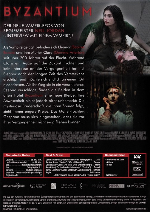 Als Vampire gejagt, befinden sich Eleanor und ihre Mutter Clara seit über 200 Jahren stets auf der Flucht. Während Clara ein Auge auf die Zukunft richtet und kein Interesse an der Vergangenheit hat, ist Eleanor nach der langen Zeit des Fliehens und Versteckens erschöpft und möchte sich endlich an einem Ort niederlassen. Als sie ihr Weg in ein verschlafenes britisches Seebad verschlägt finden sie in dem heruntergewirtschafteten Hotel Byzantium ihre neue Bleibe. Schon bald hat Clara das Etablissement zu einem gut laufenden Bordell umfunktioniert. Ihr Kommen bleibt jedoch nicht unbemerkt: Die mysteriöse Bruderschaft, die ihren Spuren folgt, zieht immer engere Kreise. Das Mutter-Tochter-Gespann muss sich eingestehen, dass sie vor ihrer Vergangenheit nicht ewig fliehen können…