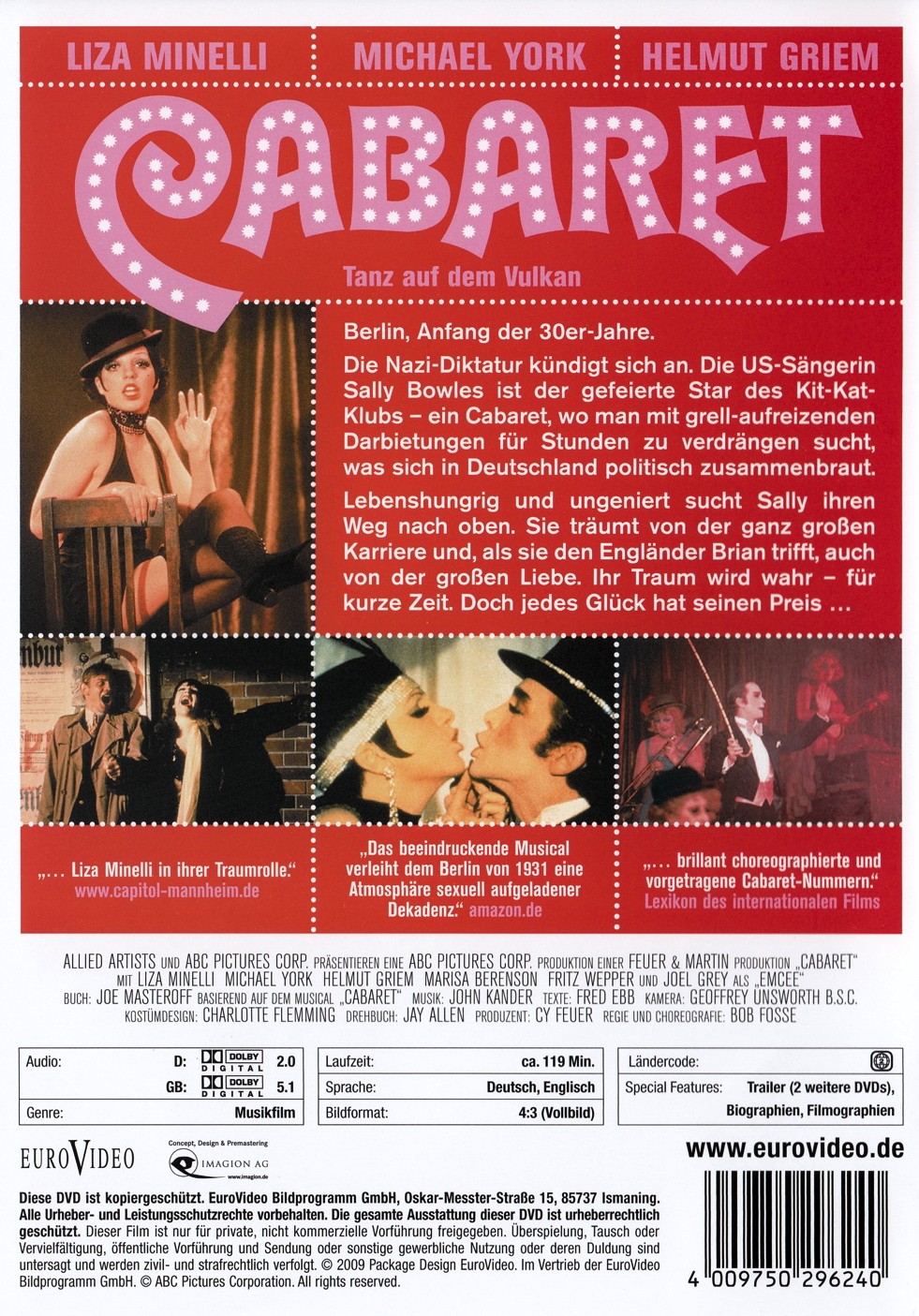 Die Beziehung eines englischen Studenten und einer Varieté-Sängerin im Berlin der 30er Jahre. Musikfilm nach dem Buch von Christopher Isherwood. Schauplatz des weltberühmten Film-Musicals ist Berlin während der letzten Jahre der Weimarer Republik. Die amerikanische Nachtclub-Sängerin Sally Bowles erfährt, dass ihr Freund, der englische Student Brian Roberts, eine homosexuelle Beziehung zu ihrem heimlichen Geliebten, dem deutschen Baron Maximillian von Heune unterhält.