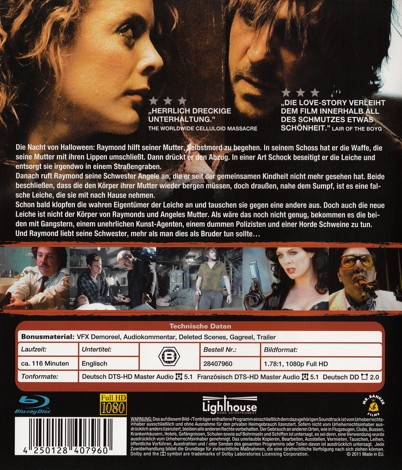 Die Nacht von Halloween: Raymond hilft seiner Mutter, Selbstmord zu begehen. In seinem Schoss hat er die Waffe, die seine Mutter mit ihren Lippen umschließt. Dann drückt er den Abzug. In einer Art Schock beseitigt er die Leiche und entsorgt sie irgendwo in einem Straßengraben. Danach ruft Raymond seine Schwester Angele an, die er seit der gemeinsamen Kindheit nicht mehr gesehen hat. Beide beschließen, dass die den Körper ihrer Mutter wieder bergen müssen, doch draußen, nahe dem Sumpf, ist es eine falsche Leiche, die sie mit nach Hause nehmen. Schon bald klopfen die wahren Eigentümer der Leiche an und tauschen sie gegen eine andere aus. Doch auch die neue Leiche ist nicht der Körper von Raymonds und Angeles Mutter. Als wäre das noch nicht genug, bekommen es die beiden mit Gangstern, einem unehrlichen Kunst-Agenten, einem dummen Polizisten und einer Horde Schweine zu tun. Und Raymond liebt seine Schwester, mehr als man dies als Bruder tun sollte…