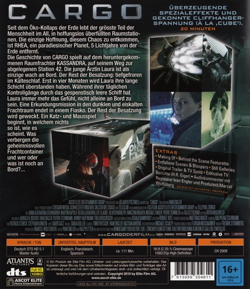Die Geschichte von CARGO spielt auf dem heruntergekommenen Raumfrachter KASSANDRA, auf seinem Weg zur abgelegenen Station 42. Die junge Ärztin Laura ist als einzige wach an Bord. Der Rest der Besatzung: tiefgefroren im Kälteschlaf. Erst in vier Monaten wird Laura ihre lange Schicht überstanden haben. Während ihrer täglichen Kontrollgänge durch das gespenstisch leere Schiff hat Laura immer mehr das Gefühl, nicht alleine an Bord zu sein. Eine Erkundungsmission in den dunklen und eiskalten Frachtraum endet in einem Fiasko. Der Rest der Besatzung wird geweckt. Ein Katz- und Mausspiel beginnt, in welchem nichts so ist, wie es erscheint. Was verbergen die geheimnisvollen Frachtcontainer und wer oder was ist noch an Bord?...
