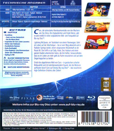 "1 Sieger, 42 Verlierer" klopft der rotlackierte PS-Protz gern aufs Blech. Doch führt ihn sein Ego-Trip nicht aufs Siegertreppchen, sondern ins schräge Wüstenkaff Radiator Springs. Dort lernt die hochgezüchtete Präzisionsmaschine bei liebevollschrulligen Land-Karossen mal einen Gang zurück zu schalten und erfährt warum Trecker schreckhaft, Mähdrescher ziemlich dämlich und Rostlauben auch Autos wie Du und ich sind. Und dass das wahre Glück im Leben nicht auf der Strasse, sondern manchmal auch ein paar Meilen daneben liegen kann...