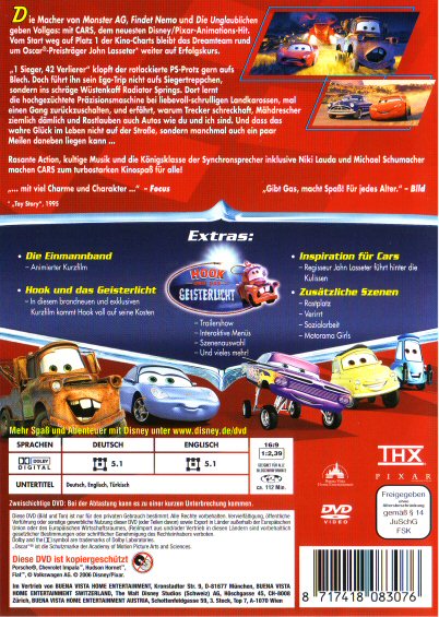 "1 Sieger, 42 Verlierer" klopft der rotlackierte PS-Protz gern aufs Blech. Doch führt ihn sein Ego-Trip nicht aufs Siegertreppchen, sondern ins schräge Wüstenkaff Radiator Springs. Dort lernt die hochgezüchtete Präzisionsmaschine bei liebevollschrulligen Land-Karossen mal einen Gang zurück zu schalten und erfährt warum Trecker schreckhaft, Mähdrescher ziemlich dämlich und Rostlauben auch Autos wie Du und ich sind. Und dass das wahre Glück im Leben nicht auf der Strasse, sondern manchmal auch ein paar Meilen daneben liegen kann...