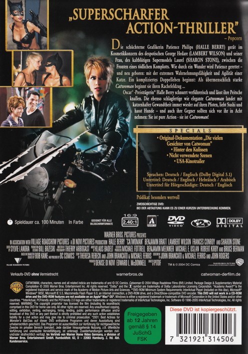 Die schüchterne Grafikerin Patience Philips gerät im Kosmetikkonzern des despotischen George Hedare und seiner Frau, dem kaltblütigen Supermodel Laurel, zwischen die Fronten eines tödlichen Komplotts. Wie durch ein Wunder wird Patience gerettet und neu geboren, mit der extremen Wahrnehmungsfähigkeit und Agilität einer Katze. Ein kompliziertes Doppelleben beginnt. Als übermenschlich starke Catwoman beginnt sie ihren Rachefeldzug...