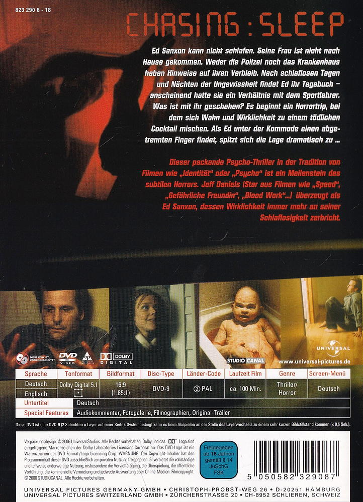 Literaturprofessor Ed Sanxon kann nicht schlafen. Seine Frau ist nicht nach Hause gekommen. Weder die Polizei noch das Krankenhaus haben Hinweise auf ihren Verbleib. Nach schlaflosen Tagen und Nächten der Ungewissheit findet Ed ihr Tagebuch - anscheinend hatte sie ein Verhältnis. Was ist mit ihr geschehen? Als Ed unter der Kommode einen abgetrennten Finger findet, spitzt sich die Lage dramatisch zu... Hat er seine Frau aus Eifersucht selbst entführt und ermordet? Langsam, aber sicher gerät der Professor in den Strudel des Wahnsinns...