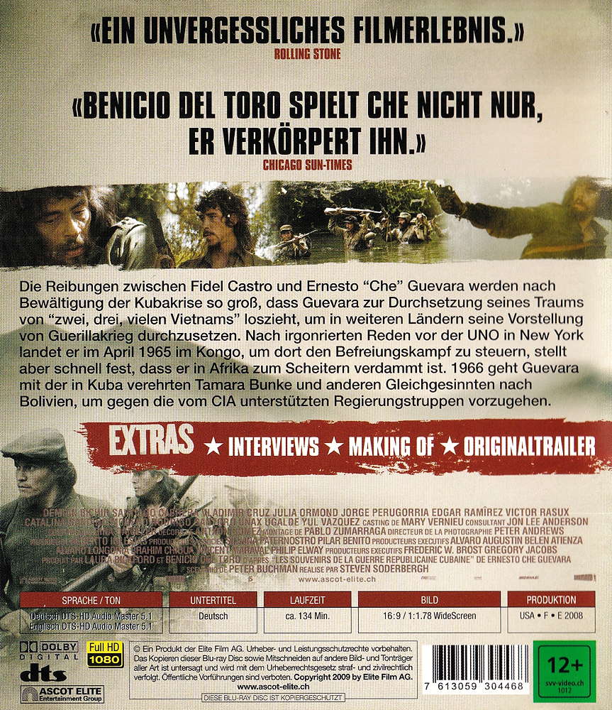 Benicio Del Toro, Demián Bichir, Franka Potente, Ramón Fernández, Catalina Sandino Moreno, Jordi Mollà, Ernesto Ché Guevara, Antxón Gómez, Larry Blake, Bina Daigeler...Peter Buchman, Pablo Zumárraga, Steven Soderbergh, Philip Elway, Patricia Alonso, Laura Bickford, Alvaro Longoria, Benjamin A. Veen, Álvaro Augustín, Belén Atienza, Frederic W. Brost, Gregory Jacobs