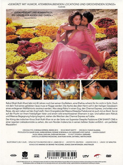 Rahul (Shah Rukh Khan) lebt mit 40 Jahren noch bei seinen Grosseltern, eine Ehefrau scheint für ihn nicht in Sicht. Doch mit dem Tod seines geliebten Opas muss er flügge werden: Die Asche des alten Herrn soll in den heiligen Gewässern seines entlegenen Heimatdorfs verschüttet werden. Also steigt Rahul in einen Zug, den Chennai Express, und erlebt eine Reise, die sein Leben auf den Kopf stellt. Denn Energiebündel Meena (Deepika Padukone) ist auch mit an Bord. Und auch wenn ihre Begegnung holprig beginnt, stehen die Weichen des Chennai Express auf Liebe.