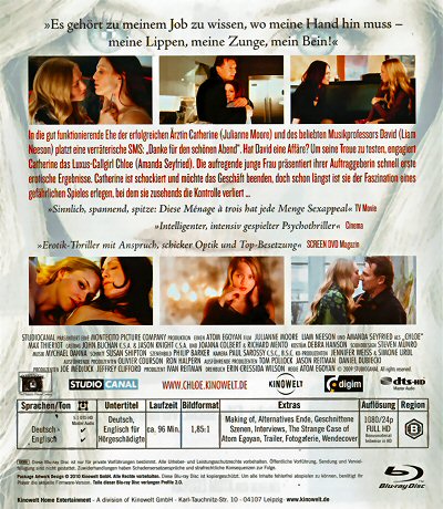In die gut funktionierende Ehe der erfolgreichen Ärztin Catherine und des beliebten Musikprofessor David platzt eine verräterische SMS: Hat David eine Affäre? Um seine Treue zu testen, engagiert Catherine das Luxus-Callgirl Chloe. Die aufregende junge Frau präsentiert ihrer Auftraggeberin schnell erste erotische Ergebnisse. Catherine ist schockiert und möchte das Geschäft beenden, aber sie erliegt der Faszination eines gefährlichen Spieles, bei dem sie zusehends die Kontrolle verliert...