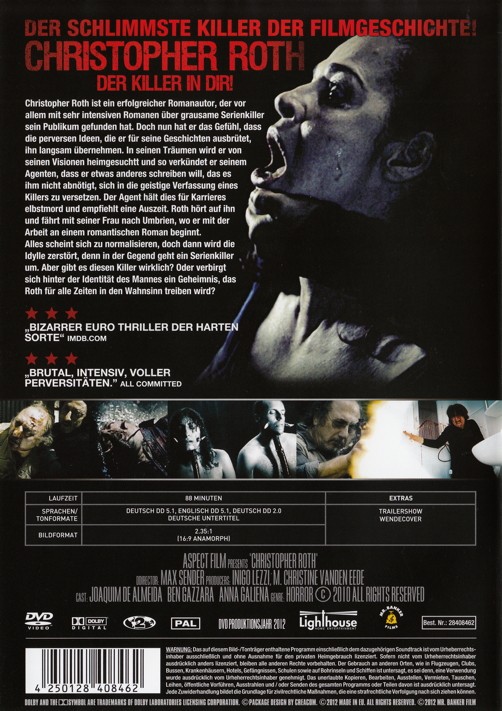 Christopher Roth ist ein erfolgreicher Romanautor, der vor allem mit sehr intensiven Romanen über grausame Serienkiller sein Publikum gefunden hat. Doch nun hat er das Gefühl, dass die perversen Ideen, die er für seine Geschichten ausbrütet, ihn langsam übernehmen. In seinen Träumen wird er von seinen Visionen heimgesuchtt und so verkündet er seinem Agenten, dass er etwas anderes schreiben will, das es ihm nicht abnötigt, sich in die geistige Verfassung eines Killers zu versetzen. Der Agent hält dies für Karriereselbstmord und empfiehlt eine Auszeit. Roth hört auf ihn und fährt mit seiner Frau nach Umbrien, wo er mit der Arbeit an einem romantischen Roman beginnt. Alles scheint sich zu normalisieren, doch dann wird die Idylle zerstört, denn in der Gegend geht ein Serienkiller um. Aber gibt es diesen Killer wirklich? Oder verbirgt sich hinter der Identität des Mannes ein Geheimnis, das Roth für alle Zeiten in den Wahnsinn treiben wird?