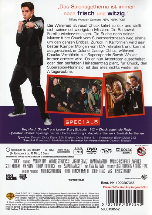 Chuck Bartowski ist ein einfacher Computerverkäufer mit einfachem Leben. doch dann öffnet er eines Tages aus Versehen den Anhang einer E-Mail und lädt sich auf geheimnisvolle Weise sämtliche Daten der CIA-Datenbank "Intersect" herunter - in sein Gehirn. Plötzlich ist Chucks Leben gar nicht mehr so einfach... In der vierten Staffel macht Chuck nach einem ersten Fehlversuch Sarah endlich einen Heiratsantrag. Doch es geschehen noch mehr Dinge, die Chucks Leben durcheinanderwirbeln, denn nun kommt auch die Suche nach Chucks Mutter voran.