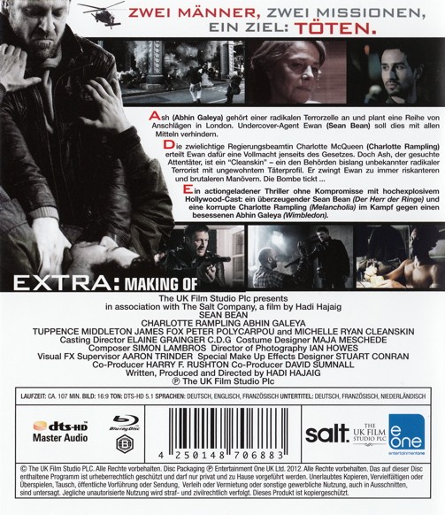 Die zwielichtige Regierungsbeamtin Charlotte McQueen (Charlotte Rampling) erteilt Ewan dafür eine Vollmacht jenseits des Gesetzes. Doch Ash, der gesuchte Attentäter, ist ein "Cleanskin" - ein den Behörden bislang unbekannter radikaler Terrorist mit ungewohntem Täterprofil. Er zwingt Ewan zu immer riskanteren und brutaleren Manövern. Die Bombe tickt...
