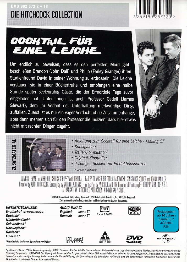- Schauspieler James Stewart, John Dall, Farley Granger, Joan Chandler, Cedric Hardwicke