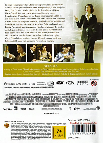 In einer bemerkenswerten Glanzleistung übernimmt die reizende Audrey Tautou (Zusammen ist man weniger allein, Liebe um jeden Preis, The Da Vinci Code) die Rolle der legendären Stilikone Coco Chanel. Von den bescheidenen Anfängen in einem französischen Waisenhaus bis zu ihrem extravaganten Leben in den Kreisen der feinen Gesellschaft von Paris werden die Stationen Coco Chanels als Sängerin, Näherin, gesellschaftliche Rebellin und Modeikone mit unbezähmbarem kreativen Geist nachgezeichnet. Benoît Poelvoorde und Alessandro Nivola porträtieren die reichen und eleganten Männer jener Zeit, die von dieser facettenreichen Frau betört sind. Mit ihrer Fantasie und ihrem persönlichen Stil - inspiriert von der Mode und voller Leidenschaft - ging Coco Chanel einen mutigen eigenen Weg mit neuem Look und Lebensgefühl, dem viele moderne Frauen bald folgten.